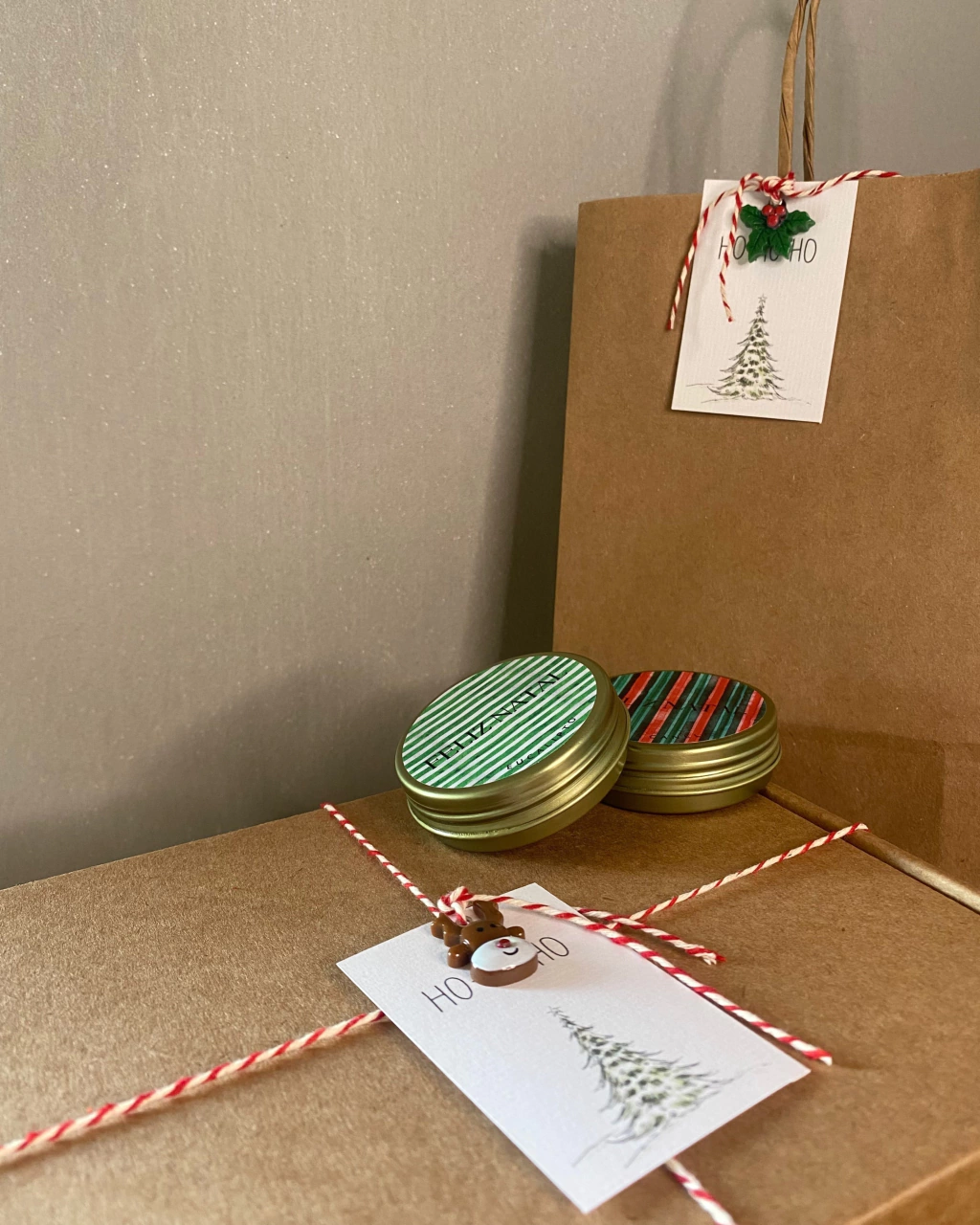 A box é composta por 10 velas sortidas e cartão natalino. A box inclui decoração com fio natalinho, tag e pingente decorativo.
