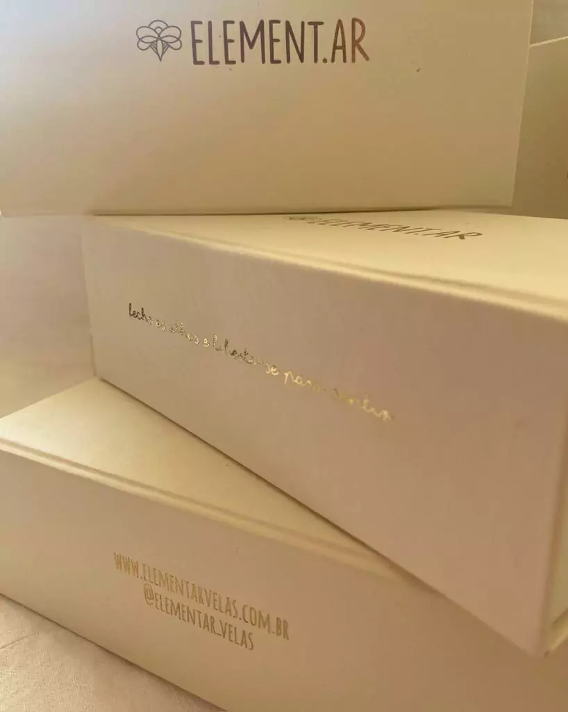 Box com acabamento cartonado off white e detalhes metalizados dourados. Perfeito para quem gosta de leveza e sofisticação.