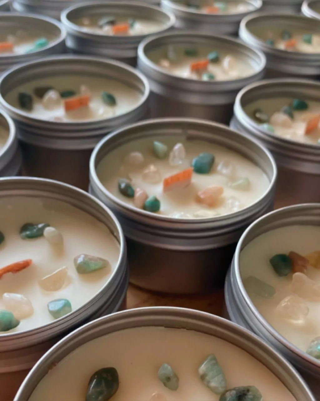 A vela possui pedras naturais: amazonita e cristal, tornando a vela ainda mais especial.